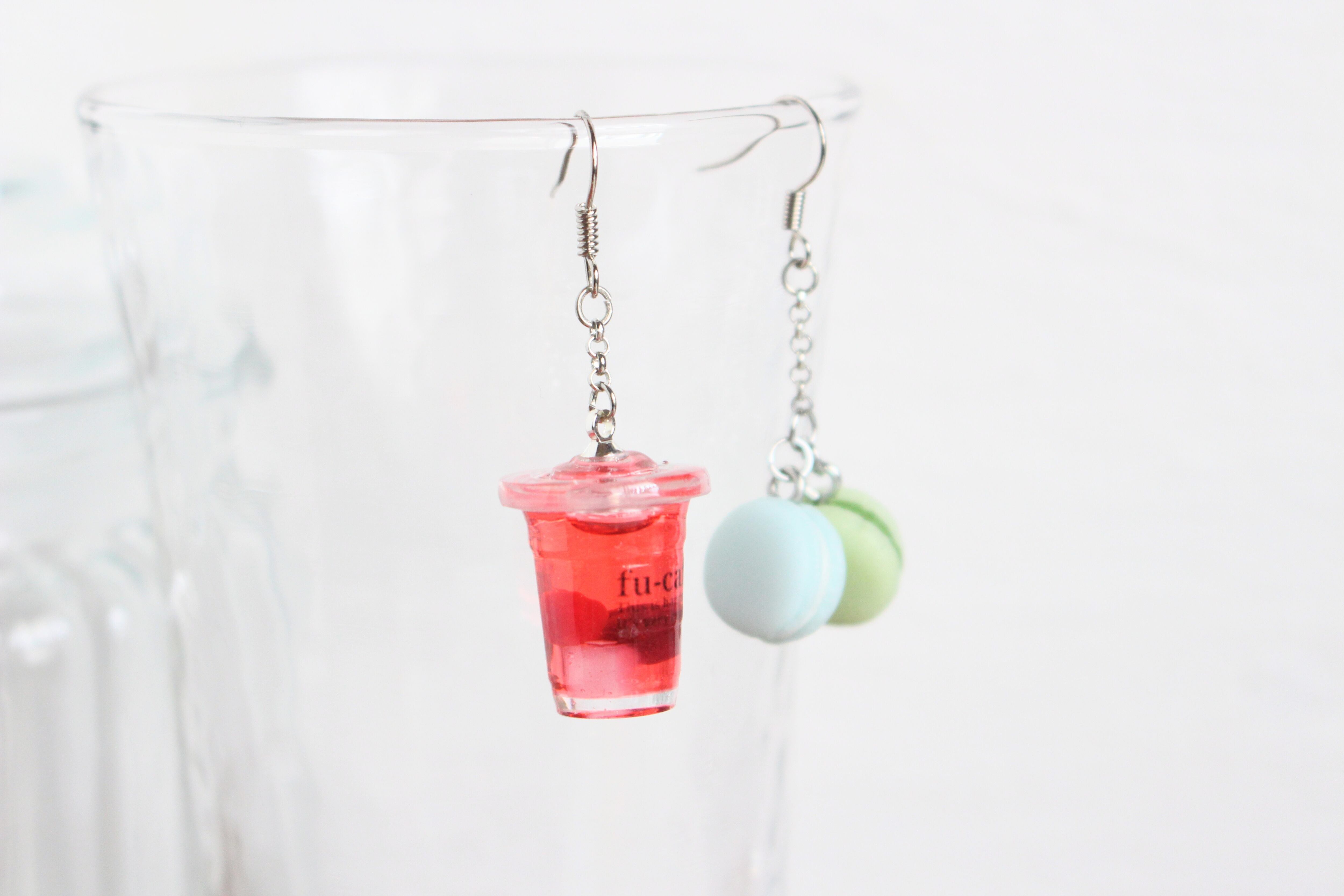 中身が動くfu-cafe ラズベリージュースとマカロンの耳飾り
