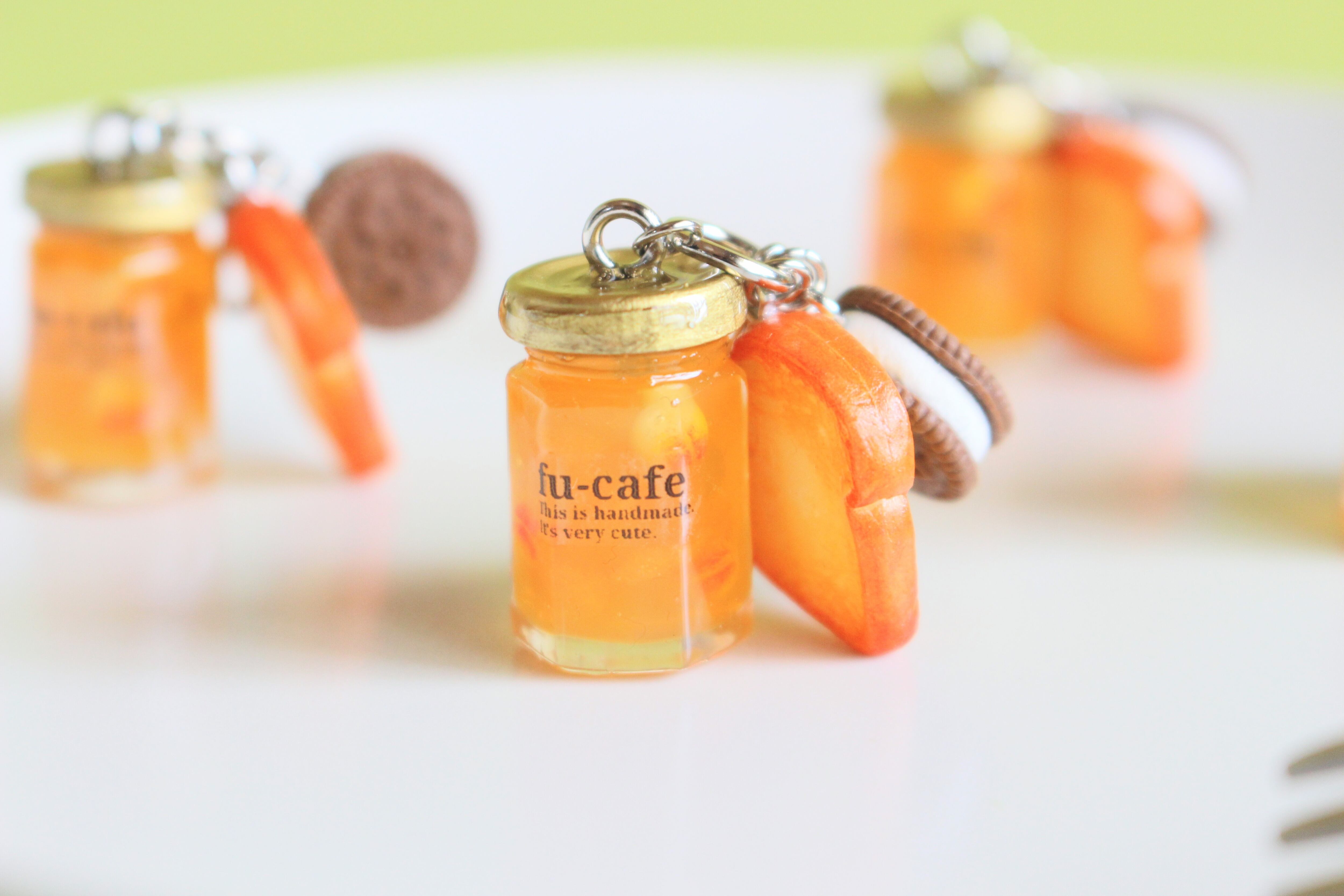 まるで本物のカフェから出てきたようなリアルな梅ジャムとクッキーサンドアイスとトーストのチャームを作りました♡