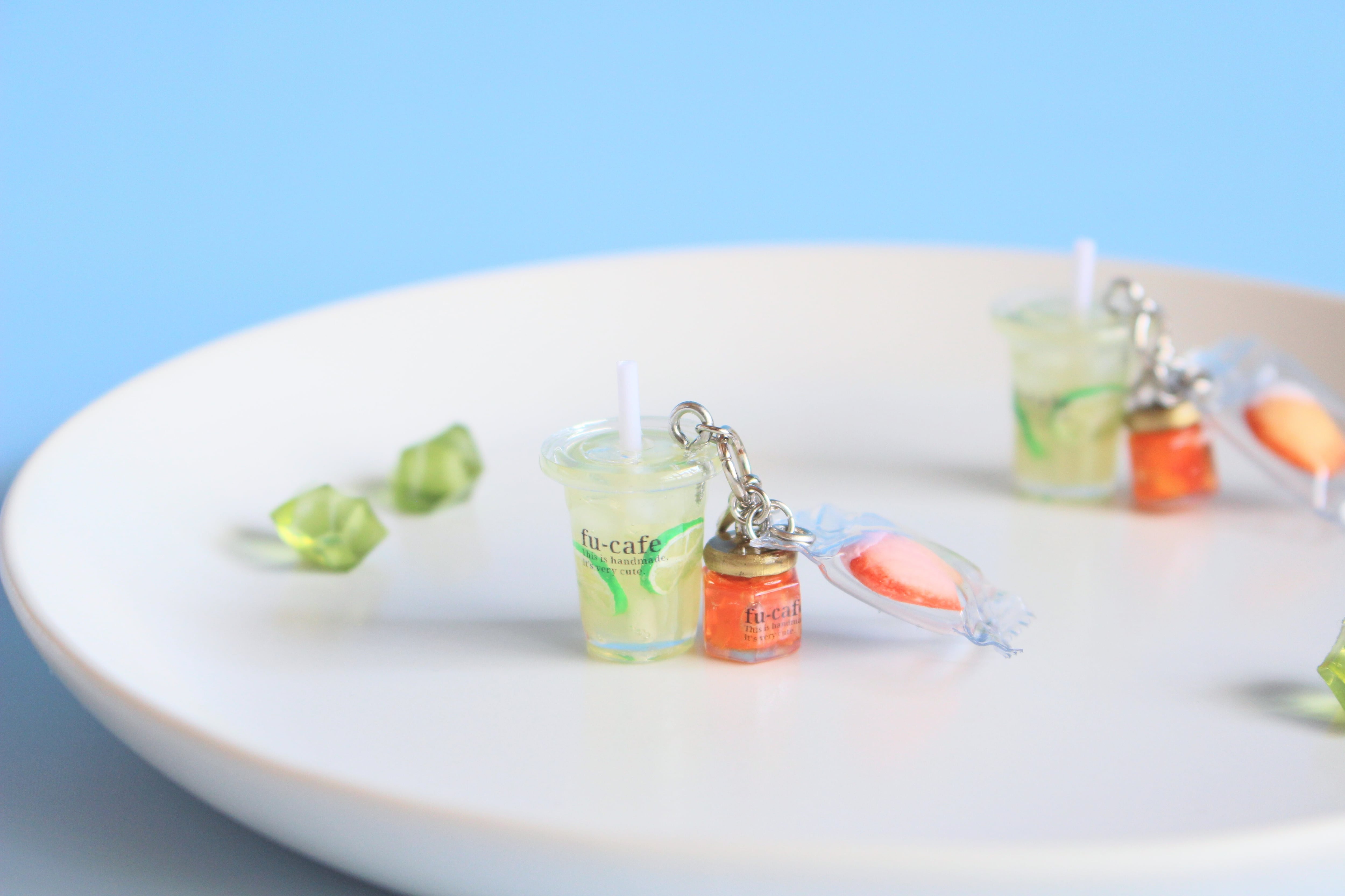 ライムジュースとマドレーヌとママレードジャムのミニチュアフェイクスイーツのチャーム