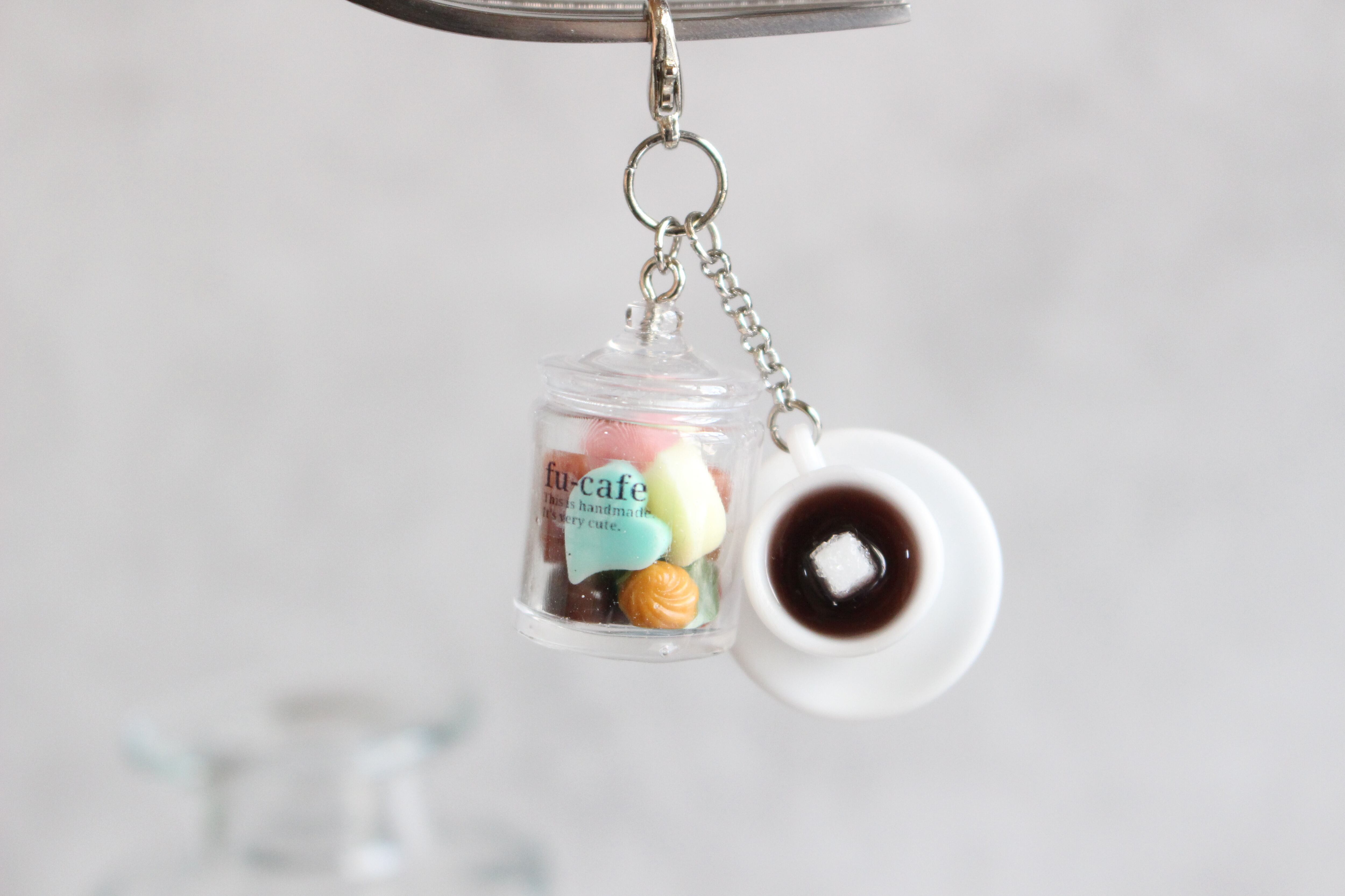 あなたのバッグやポーチを特別なカフェタイムに彩る、ミニチュアのキャニスターとホットドリンクのチャームセットです。