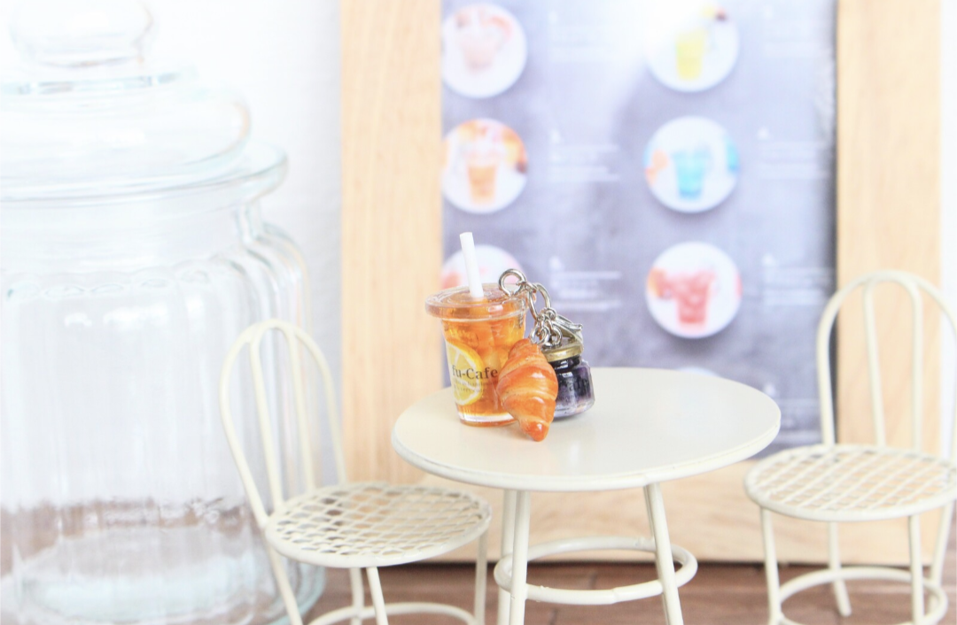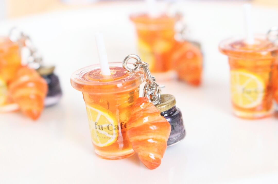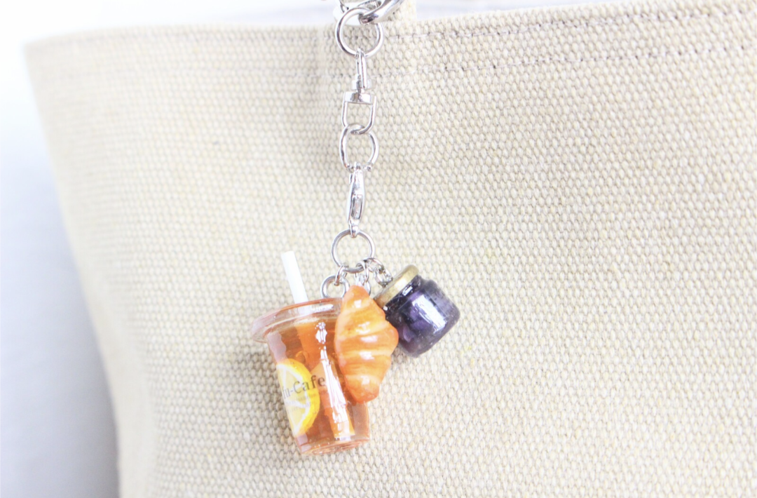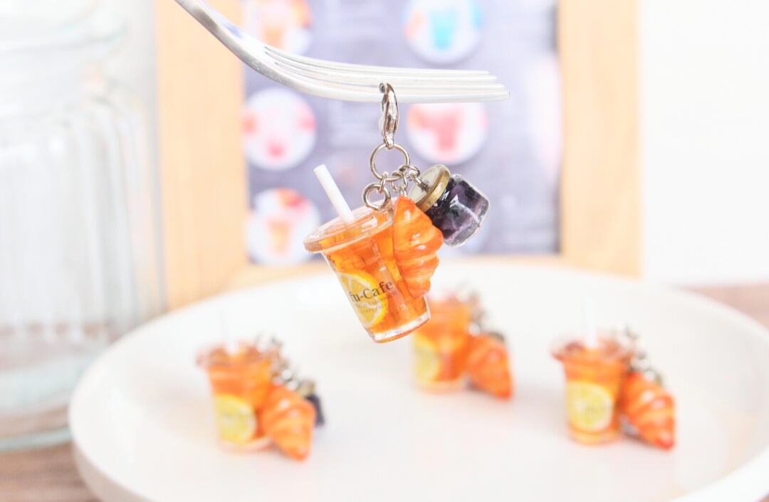 まるで本物のカフェから出てきたようなリアルなレモンティーとブルーベリージャムとクロワッサンのチャームを作りました♡