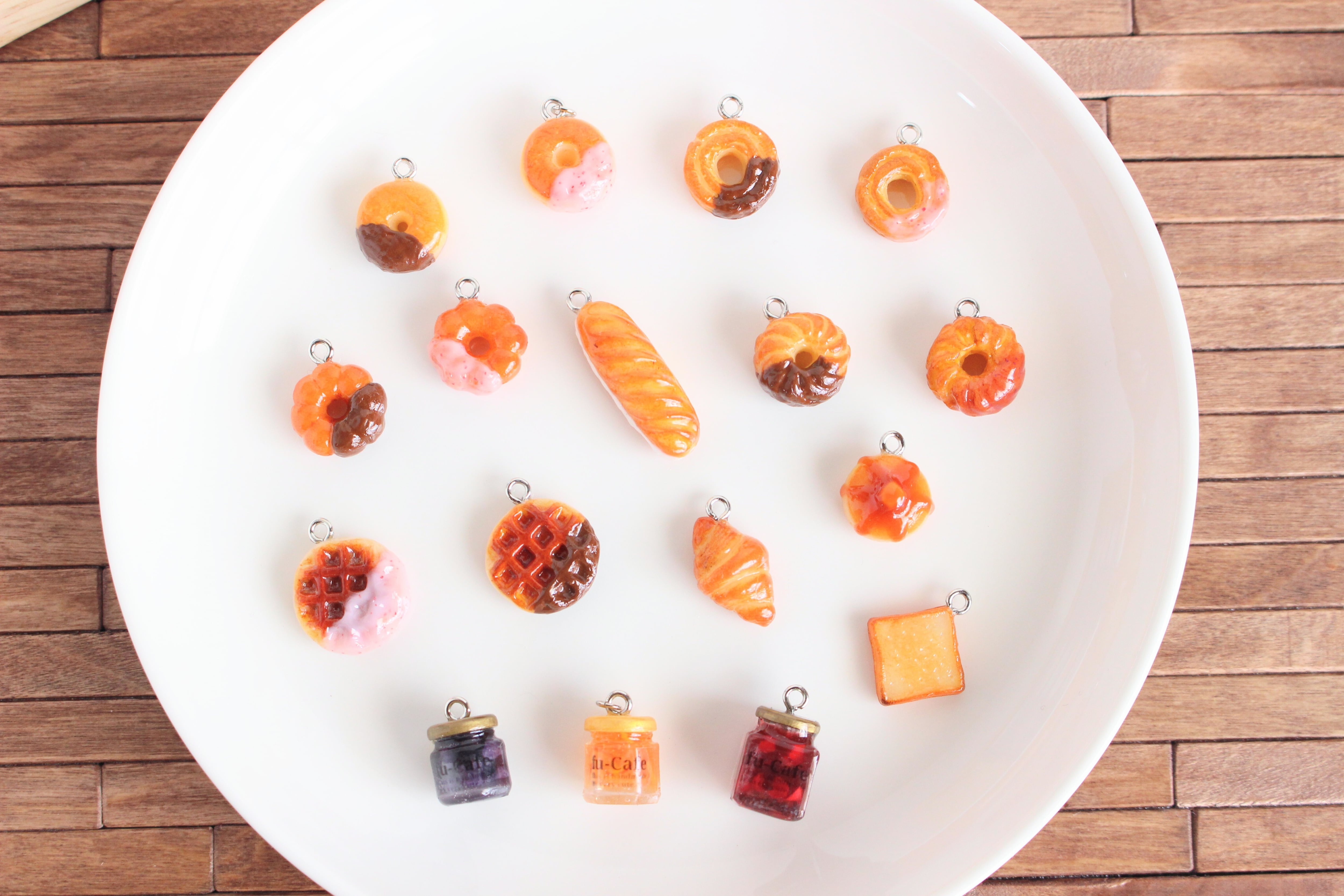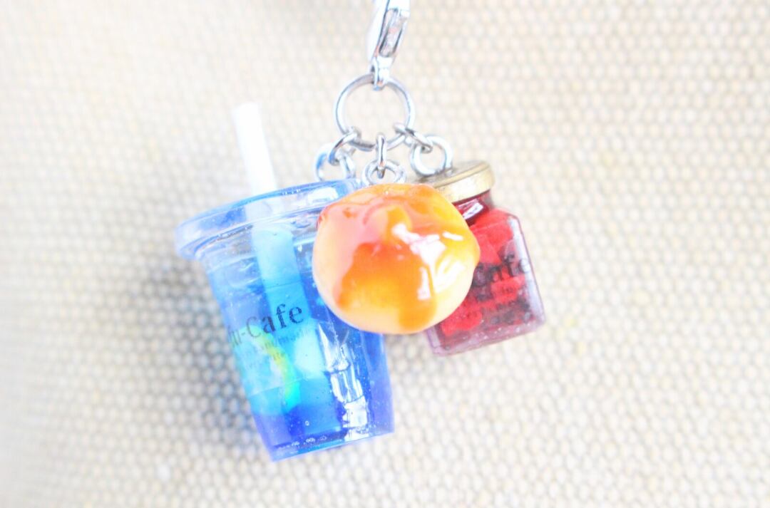 まるで本物のカフェから出てきたようなリアルなアイスコーヒーとブルーベリージャムとパンケーキのチャームを作りました♡