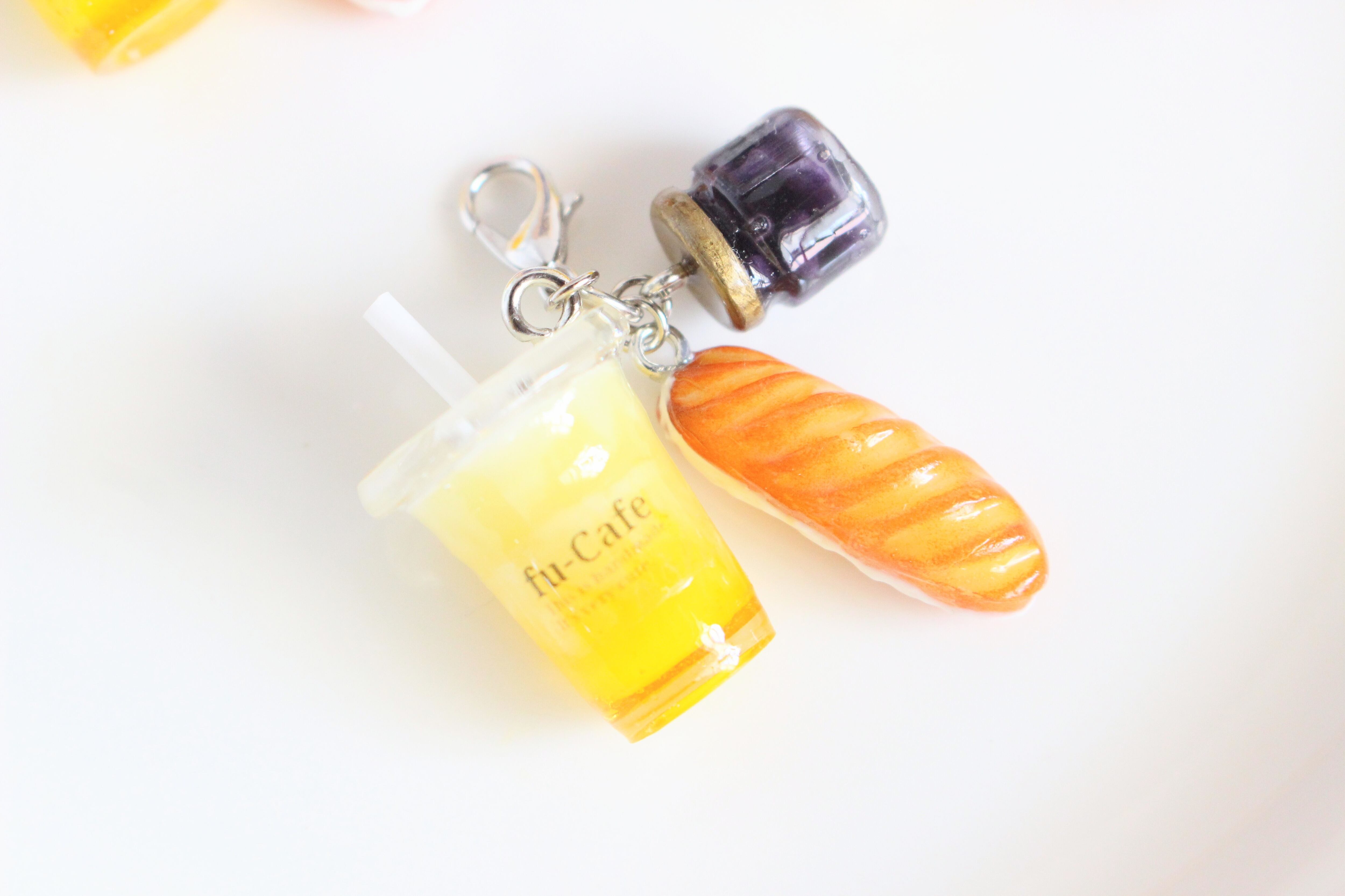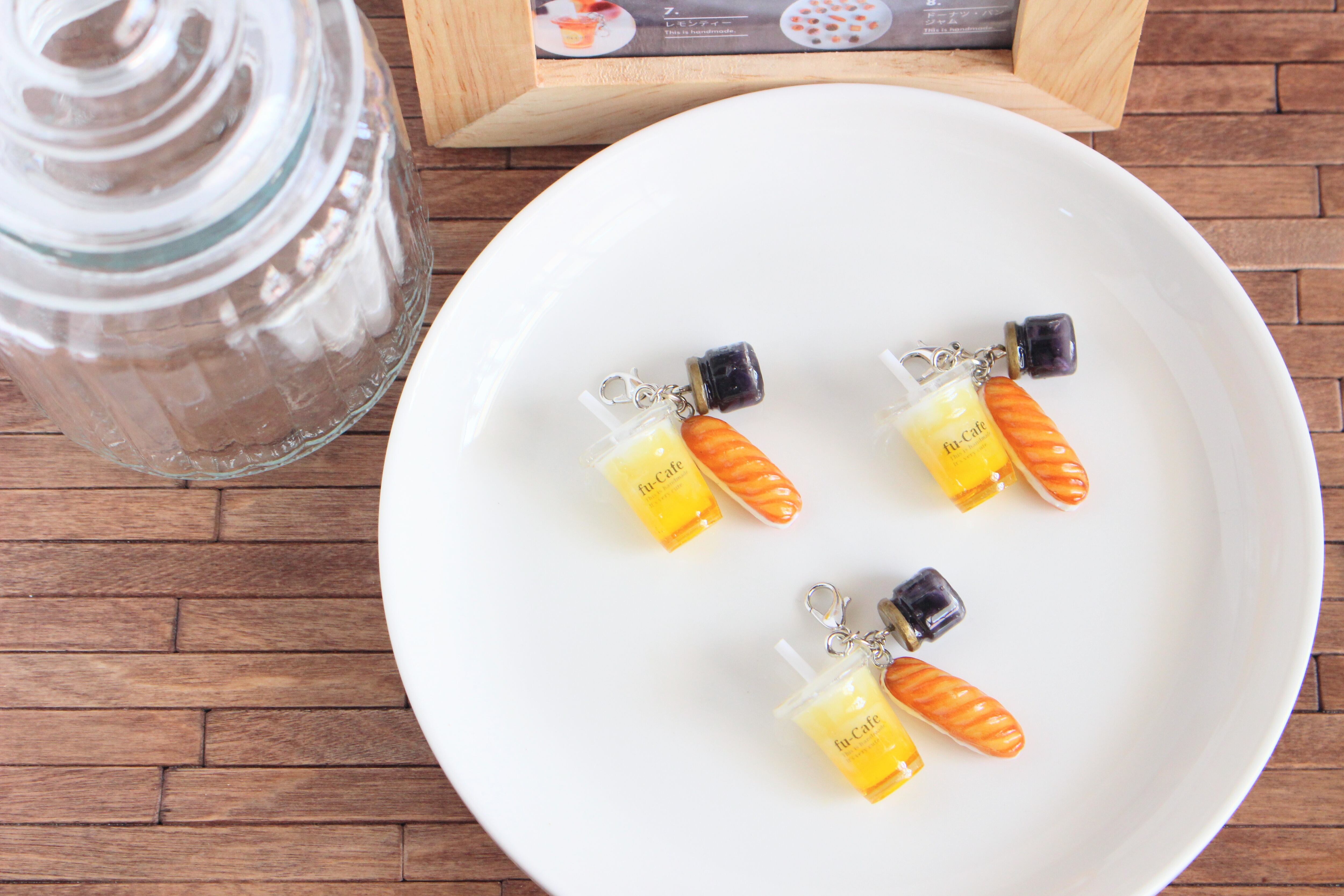 まるで本物のカフェから出てきたようなリアルなレモンオレとブルーベリージャムとミルクフランスのチャームを作りました♡