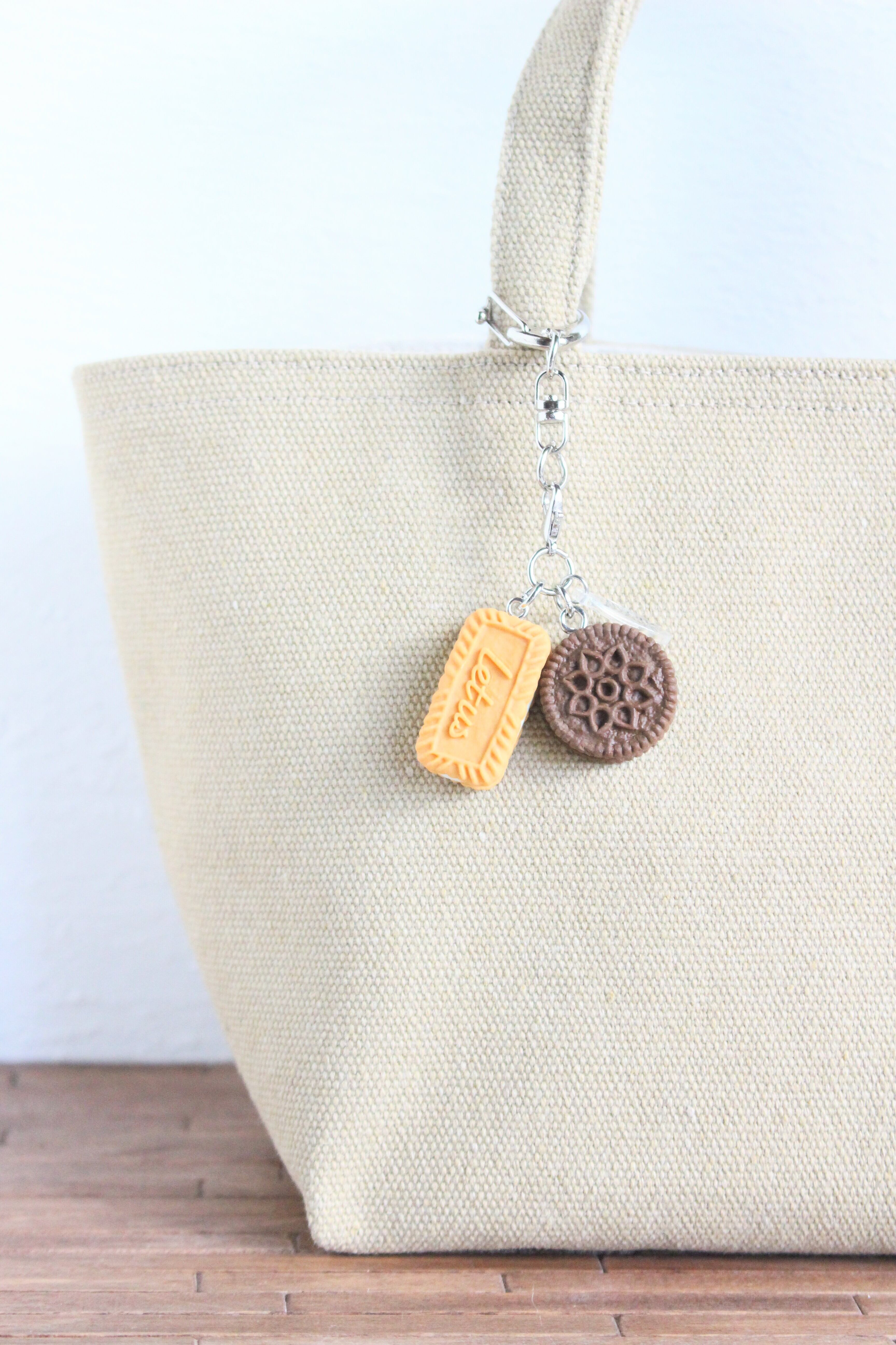 まるで本物のカフェから出てきたようなリアルなクッキーサンドアイスのチャームを作りました♡