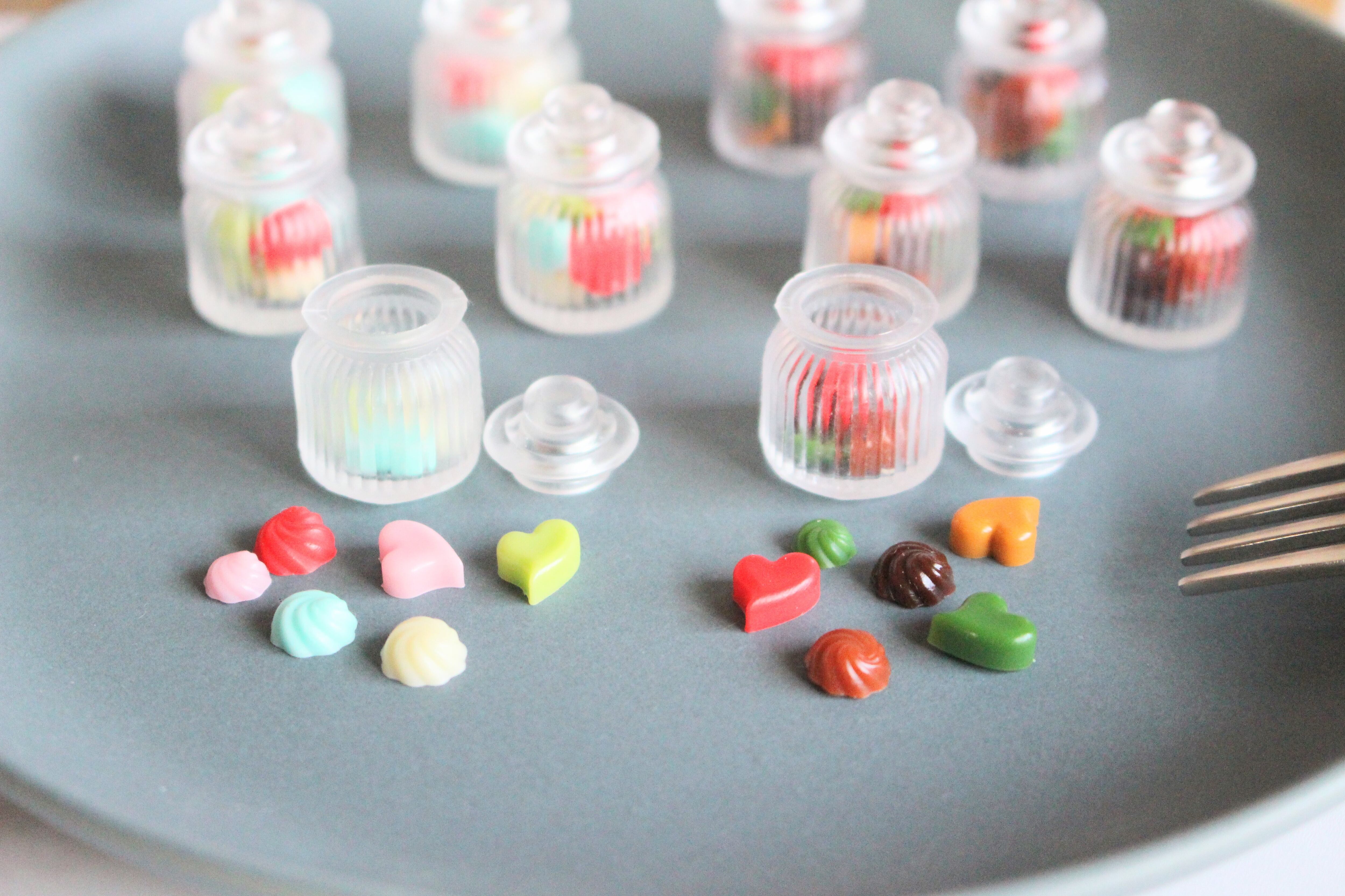 まるで本物のお洒落なカフェから出てきたようなリアルなミニチュアキャニスターにチョコレートを詰めてみました♡
